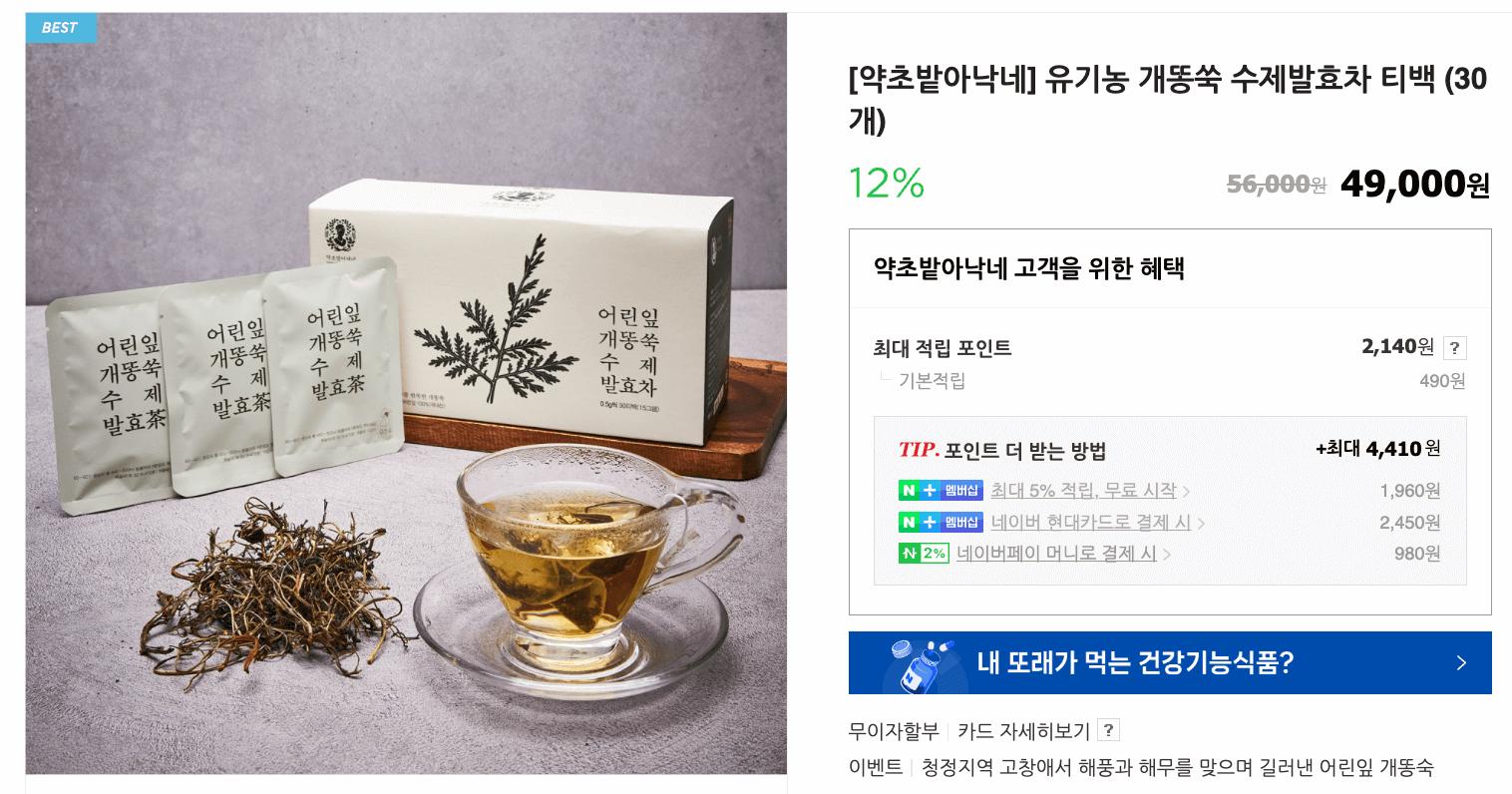 어버이날 선물 추천 – 유기농 쑥 수제발효차 (49,000원)