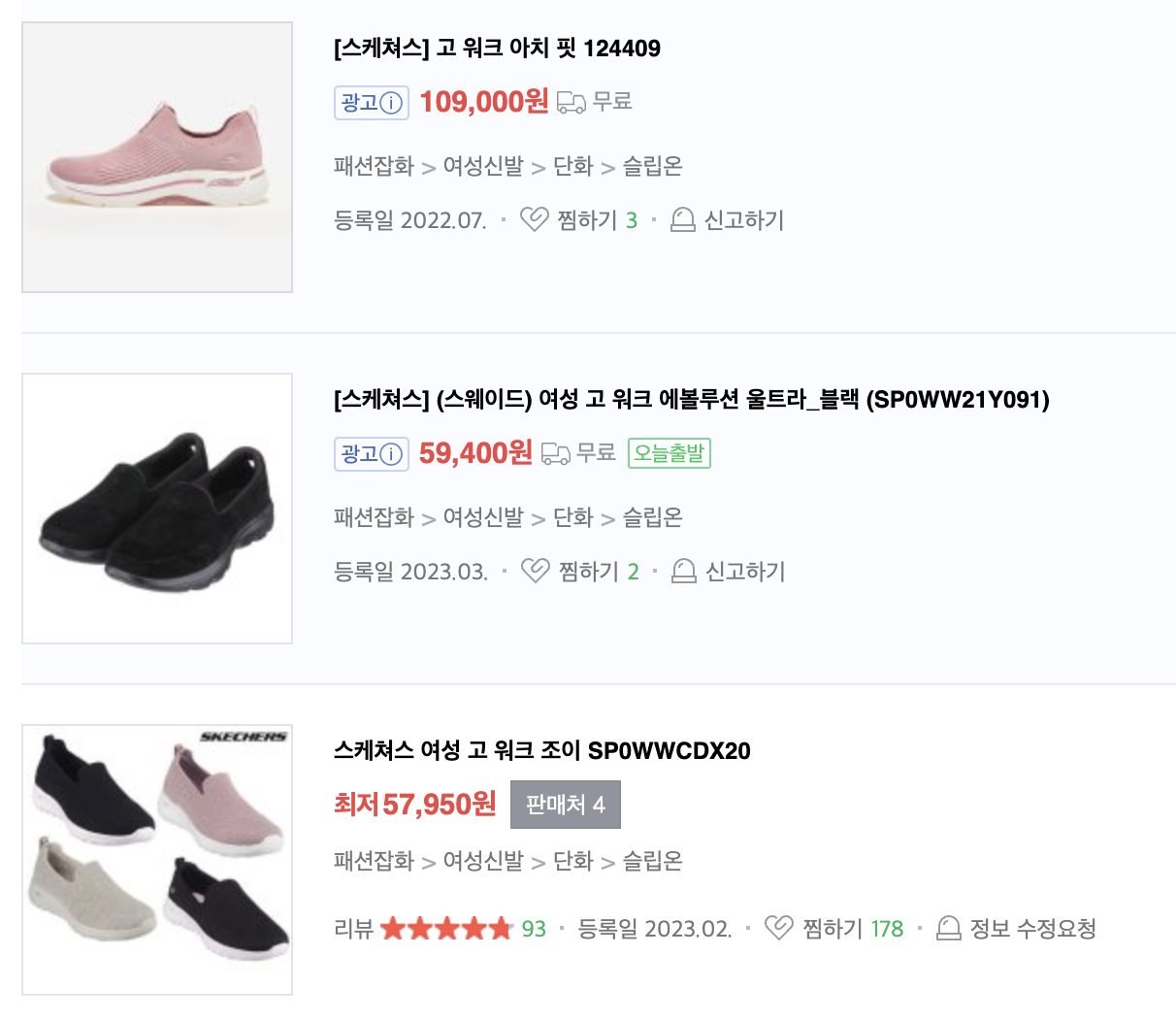 어버이날 선물 추천 – 스케쳐스 고워크 (89,000원 ~ 109,000원)