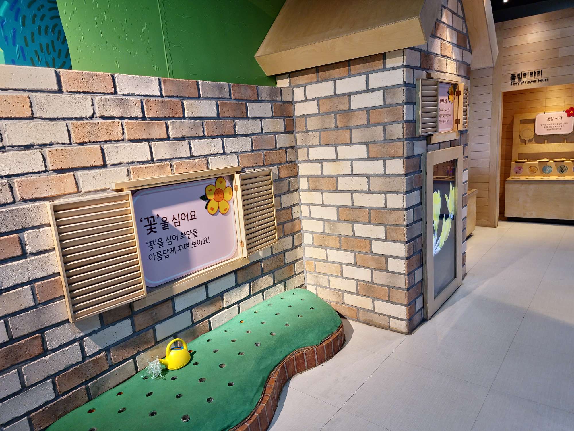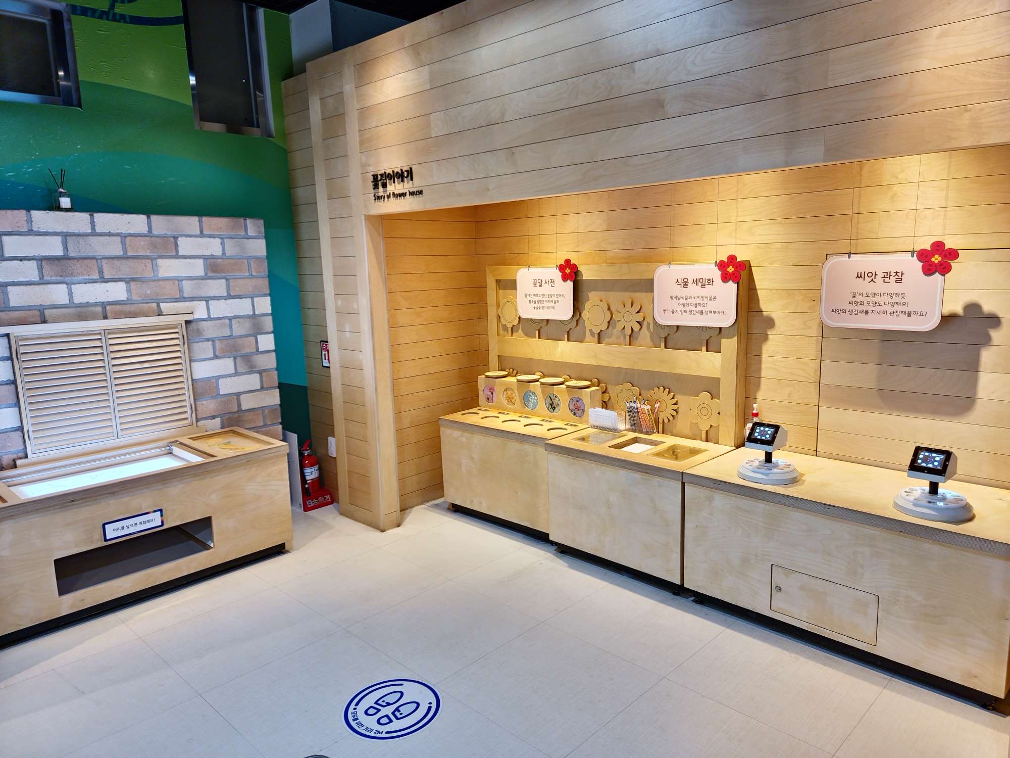 영유아를 위한 공간으로 키 100cm 이하의 친구들을 위한 꽃모형 심기, 꽃잎으로 찻집 놀이, 씨앗 관찰, 광합성, 발판놀이터 등이 있었다. 대표적인 시설이라고 할 수 있는 IGRU(가운데 큰 디딤돌 시설)는 키 100cm 이상의 친구들만 이용할 수 있어 어린 친구들을 위한 축소 시설인 것 같았습니다.