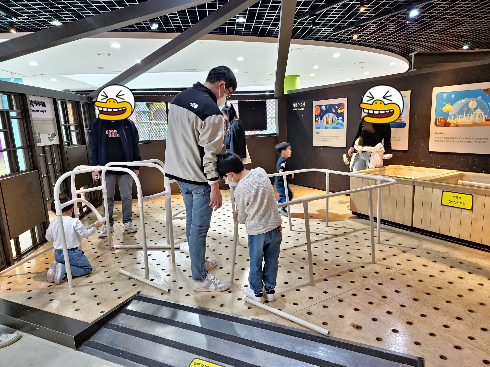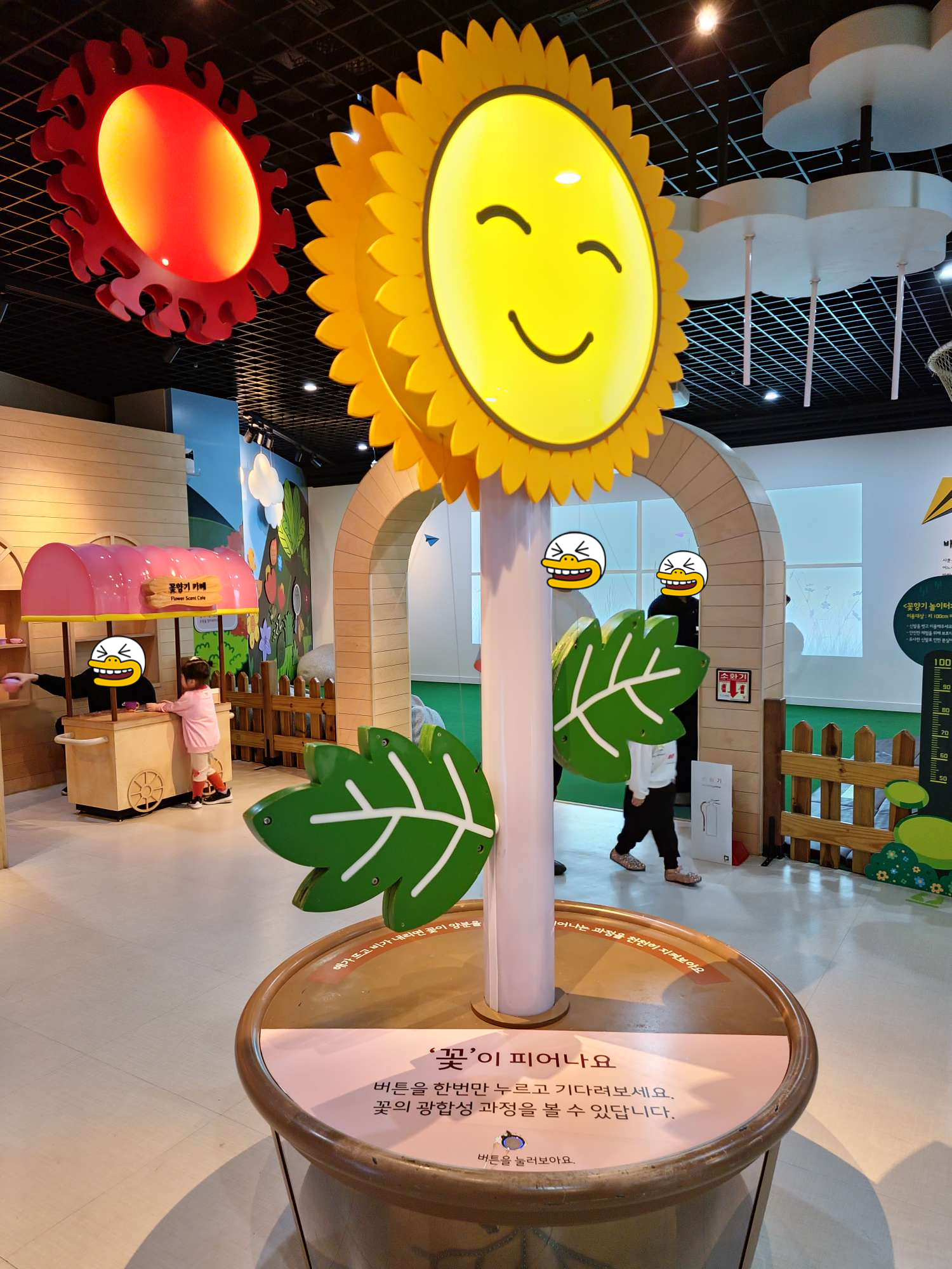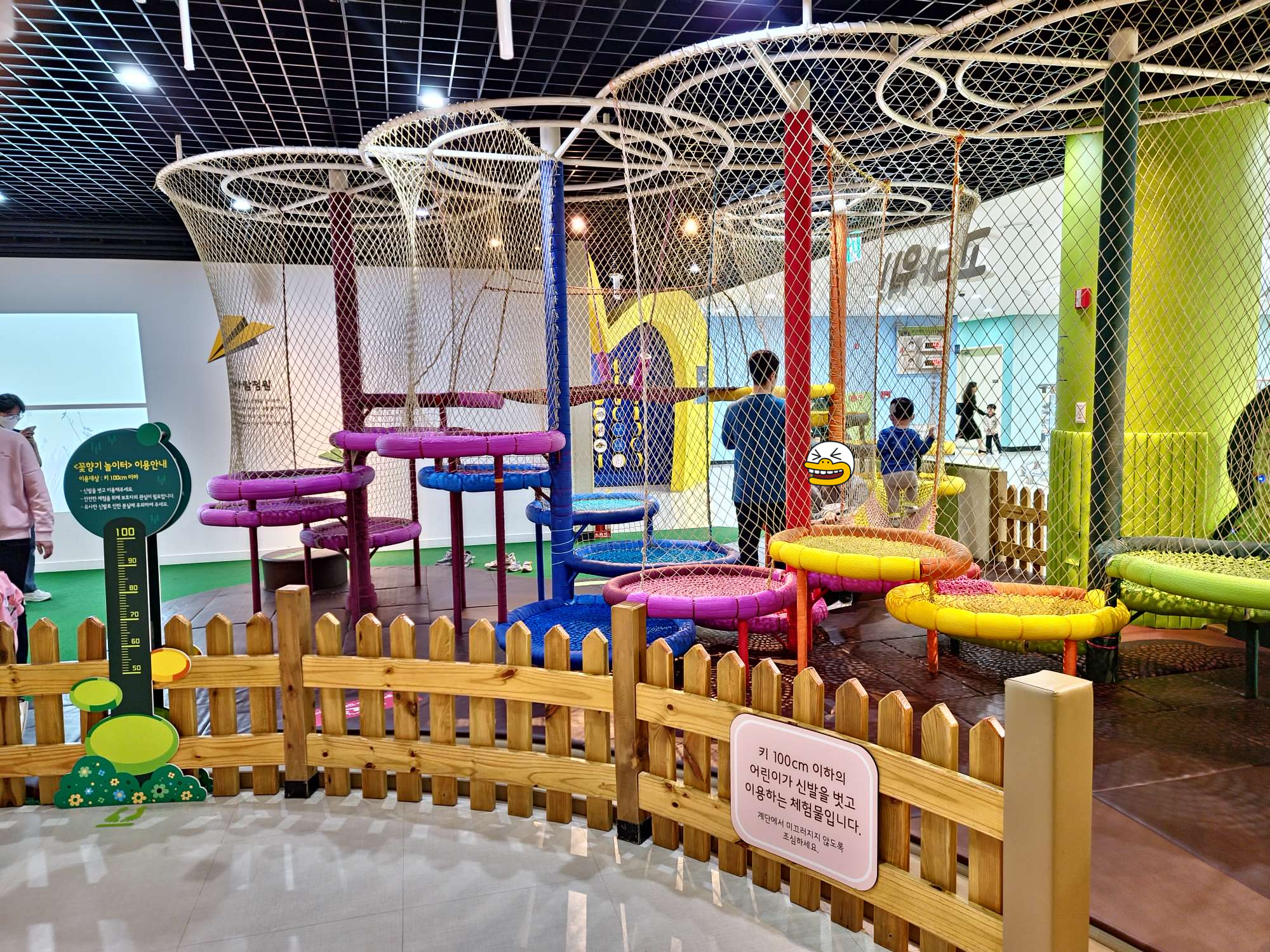 영유아를 위한 공간으로 키 100cm 이하의 친구들을 위한 꽃모형 심기, 꽃잎으로 찻집 놀이, 씨앗 관찰, 광합성, 발판놀이터 등이 있었다. 대표적인 시설이라고 할 수 있는 IGRU(가운데 큰 디딤돌 시설)는 키 100cm 이상의 친구들만 이용할 수 있어 어린 친구들을 위한 축소 시설인 것 같았습니다.