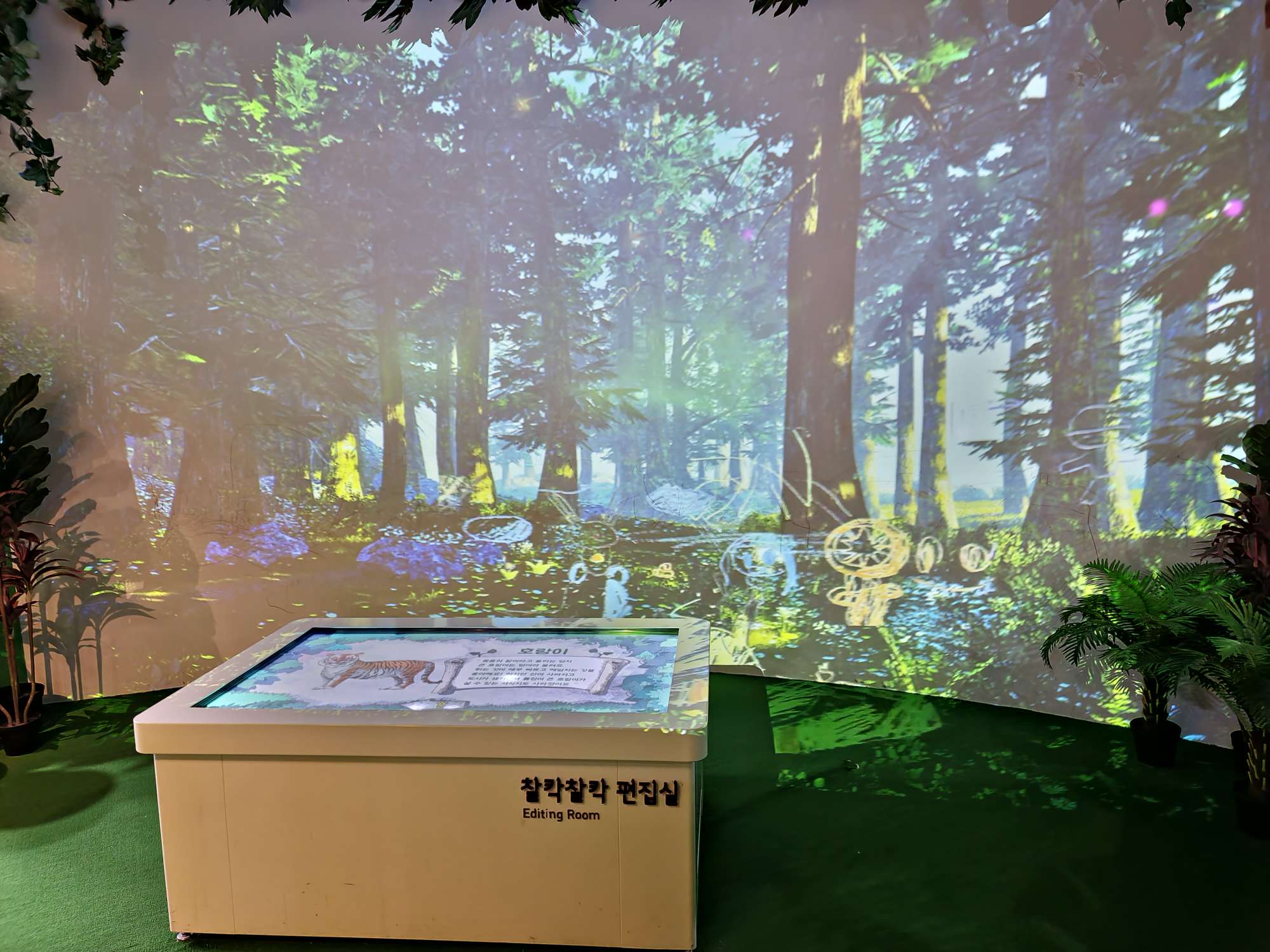 그래픽과 AR로 만든 원더풀랜드입니다. 벽에 걸린 그림은 시간이 지남에 따라 바뀌며 움직이며 바닥에 있는 연못의 물고기는 옆에 준비된 원으로 잡으면 움직이지 않고 잡을 수 있다. 멸종 위기에 처한 동물에 대한 이야기나 습지 생태계 관찰에 관한 이야기 ​​등 어린이와 어른 모두에게 좋은 코너였습니다.