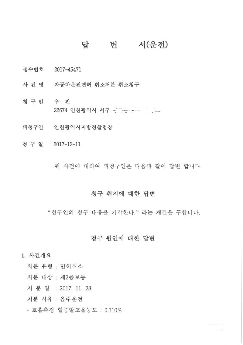 제가 구제할 수 있을까요?음주운전이라는 중죄를 저질렀어요. 하지만 생계를 위해 운전이 필요합니다.면허취소 구제행정심판 인용률이 낮아진다는 것은 이전에 비해 구제기준이 엄격해지고 구제범위가 좁아지는 것을 의미한다. 예를 들어 과거에는 초범이었고 수치만 어느 정도 낮으면 가능성이 높았지만 지금은 장담할 수 없다.이영걸 주연의 영화 ‘영웅’에서 나오는 대사, 십보필살… 열보 안에 들면 무조건 죽일 수 있는 검법처럼 본 행정사에게도 음주운전면허 구제행정심판에 있어 십보필살의 검법이 있었다. 10년간 수련한 경험과 노하우, 구제 공식 등으로 나는 내 십보필살의 검법을 완성했다. 그러면서 자신 있게 말했다. 선생님은 구원받을지도 몰라요!그리고 열 걸음 안에 들어오지 않았다면…그리고 열 걸음 안에 들어오지 않았다면… 다시 말해 내가 구제할 수 없다면… 온라인 영상 제작과 광고 대행업체 광고를 통해 광고 기세를 올리는 어떤 변호사든, 행정사든 음주운전 면허 취소 구제를 할 수 없다는 나름의 자심감이 있었다. 물론 지금도 그 자신감은 유지하고 있다.하지만…나의 십보필살이 흔들리기 시작한 시점이 내 경험상 작년부터였던 것 같다. 내 경험과 노하우, 구제 공식… 다시 말해 십보필살의 검법으로는 전혀 할 수 없는 의뢰인이 십보필살을 통하지 않았다. 너무 당황했어. 그리고 행정심판위원회 담당자와 통화를 하며 울분을 토했다. 이분은 안 될 이유가 없지 않나요?수화기 너머의 음성은 그저 매뉴얼대로 “우리로서도 왜 그런지 모르겠습니다”점점 엄격해지는 면허취소 구제… 당신의 선택은!?따라서 나의 칼날도 더 날카로워져야 했다. 수련을 게을리하지 않았지만 벽이 더 높아졌다. 적어도 내 의뢰인은 면허 구제가 되어야 한다.음주운전면허 취소 행정심판 심리… 요즘 흐름 첫 번째. 과거와 달리 행정심판 구제 범위에 들어갈 경우에는 심리기일을 매우 지연시킨다는 것이다. 그만큼 인용될 만한 사건을 보고 또 보고 신중하게 판단하고 있다. 아래 사건은 작년 12월 초에 접수된 사건이다. 하지만 올해 3월까지 늦어지고 있는 것으로 나타났다.일단 심리기일이 지연된다는 것은 좋은 징조일 수 있지만 심리기일이 지연됐다고 해서 반드시 인용된다고 할 수는 없다.둘째, 중앙행심위원회에서 청구인에게 상당히 많은 자료를 다시 요구한다. 망라한 양형자료(첨부자료)가 접수됐는데도 다시 서류를 요구한다. 때로는 두세 차례 더 서류를 요구하는 경우가 있다. 물론 여담이지만 이 계기를 통해 필자의 칼날은 더욱 날카로워졌다. 준비해야 할 증빙서류 목록이 점점 늘어나고 있다. 아래 사건의 경우에는 심리기일이 1회 지연된 후 증빙서류를 추가로 2회 요청한 사건이다. 그만큼 중앙행심위 심리는 이전보다 상당히 까다로워졌다.앞으로 음주운전 무관용 원칙에 따라 과거보다 인용률이 높아지기는 어려울 것으로 본다. 그렇다면 내 십보필살의 검법도 오보필살로 바꿔야 할까…?아니, 나는 아직 건재해서 10년간 음주운전면허 취소 구제의 칼날을 갈고 왔어. 의뢰인을 위해 열 걸음 필살 수련은 게을리 하지 않았다. 아무리 벽이 높아도 뛰어넘어 적에게 위협적인 칼날처럼 촘촘하게 행정심판 청구서를 완성할 것이다.아니, 나는 아직 건재해서 10년간 음주운전면허 취소 구제의 칼날을 갈고 왔어. 의뢰인을 위해 열 걸음 필살 수련은 게을리 하지 않았다. 아무리 벽이 높아도 뛰어넘어 적에게 위협적인 칼날처럼 촘촘하게 행정심판 청구서를 완성할 것이다.아니, 나는 아직 건재해서 10년간 음주운전면허 취소 구제의 칼날을 갈고 왔어. 의뢰인을 위해 열 걸음 필살 수련은 게을리 하지 않았다. 아무리 벽이 높아도 뛰어넘어 적에게 위협적인 칼날처럼 촘촘하게 행정심판 청구서를 완성할 것이다.에필로그… 상기 문자내역은 의뢰자와 나눈 오늘 오전 문자이다. 사실 나는 뛰는 듯한 목소리로 전화를 했다. 오히려 의뢰인의 목소리가 담담하다. 쑥스러워서 내가 물어봤어. “기쁘지 않아요?” 행정사님이면 좋을 줄 알았는데!열 걸음 필살… 의뢰인이 더 강하다.열 걸음 필살… 의뢰인이 더 강하다.