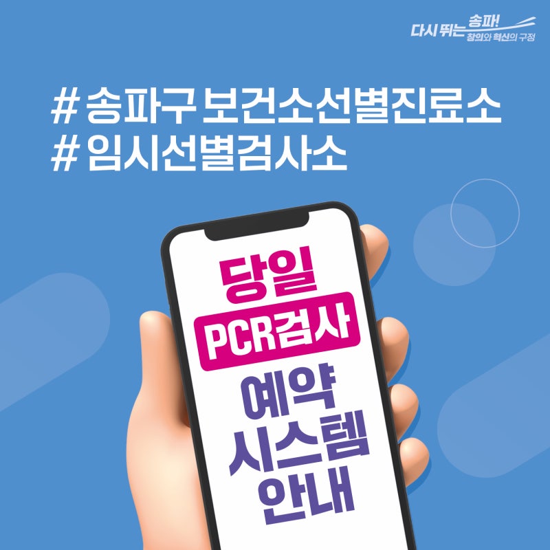 송파구청 옆에 위치하고 있으며 송파구보건소 항원신속검사센터와 PCR검사센터로 나뉜다. 지금은 누구나 PCR을 할 수 없습니다. – 코로나19 증상이 있는 경우 – 신속항원검사에서 양성이 확인된 경우 – 직장/직원 대상 정기 선제검사 – 밀접접촉자(가족/동거인 자가격리) – 격리해제 전 – 해외입국자(2일 이내) – 입대 전 – 입대 전 입영