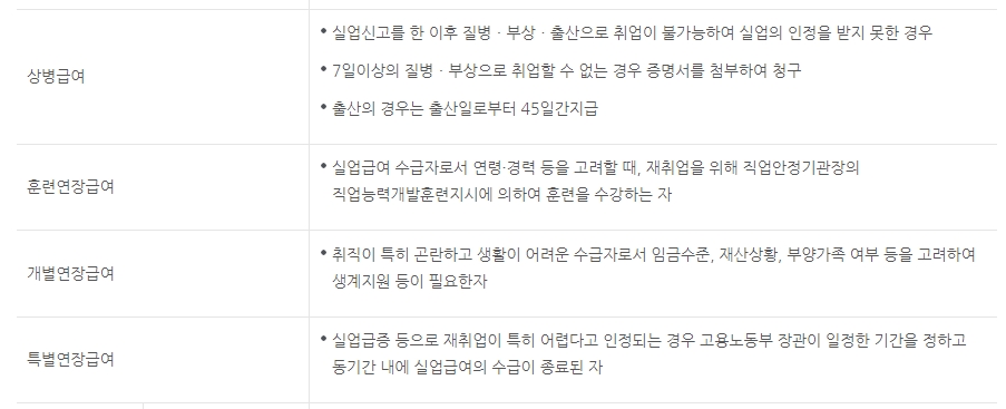 6. 또한 각 급여에 대한 간략한 설명과 취득할 수 있는 조건과 취득할 수 없는 조건을 나열하였습니다.