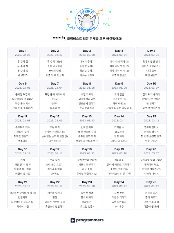 프로그래밍 언어의 기본 문법을 익히고 연습하는 데 코딩 테스트가 좋다고 생각해서 자바를 공부한 후 레벨 0 프로그래머들만을 위한 문제를 풀기 시작했습니다.