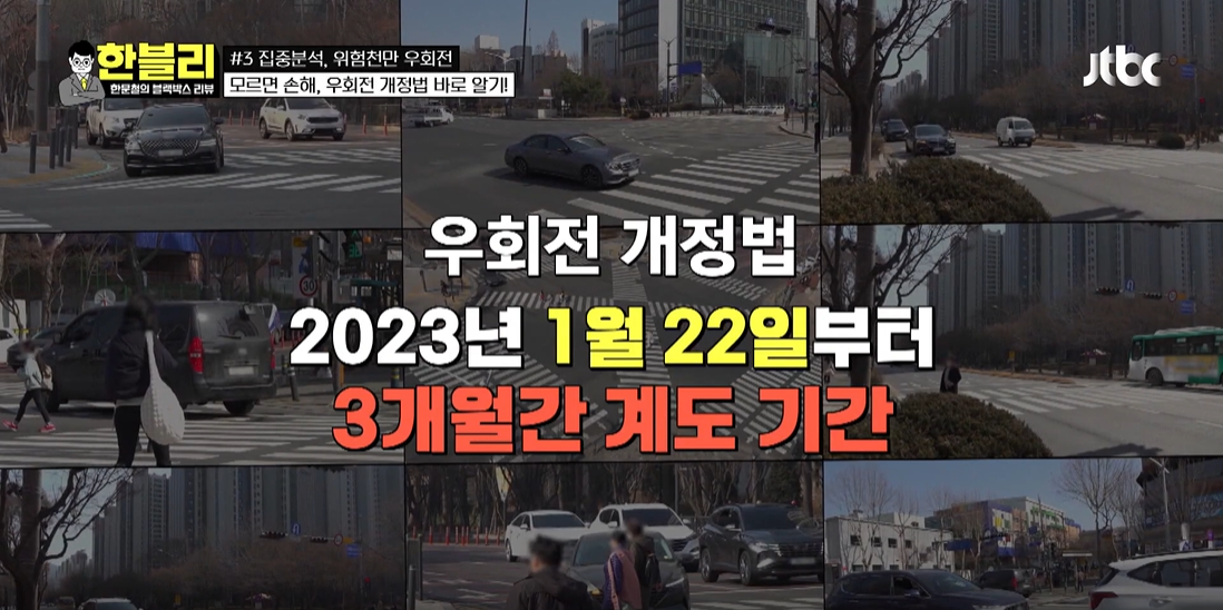 지난 3월 23일 방송된 한블리(한문철의 블랙박스 리뷰) 23회에서는 우회전법 개정안에 대해 자세히 설명드렸습니다.