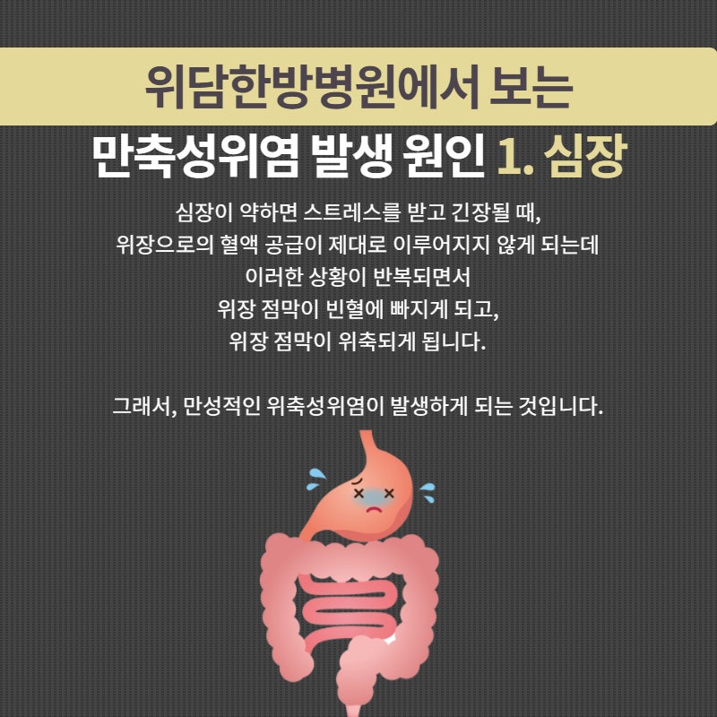 현대인에게 가장 흔한 질병 중 하나인 위축성 위염의 치료 방법에 대해 알아보겠습니다. 위염은 위벽의 염증입니다. 우리나라 국민 10명 중 1명이 이 질환을 앓고 있는 것으로 알려져 있으며, 최근 젊은 세대에서 발병률이 증가하고 있습니다. 특히 위축성 위염은 만성화되는 경향이 있으며 장상피화생과 함께 악화되며 그렇지 않을 경우 위암 발생률 또한 매우 높아 주의를 기울여야 한다. 기능 한의학적 관점에서 해결하는 과정을 설명하겠습니다.