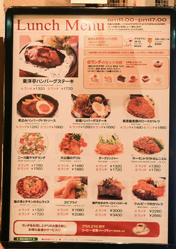 여기 한 문장, B 문장나는 가지고있다 사명~이다 요리 + 토마토 샐러드 + 밥 또는 빵 이것은 문장입니다 나 문장~이다 세트 A + 디저트 케이크추가됩니다! 우리 함박스테이크, 그릴드 치킨, 오므라이스 이렇게 3가지 메뉴를 주문했는데 모두 A세트로 주문했습니다. 가격은 1320 + 1480 + 1320 = 4120엔 보지마! 이렇게 맛있는 한끼가 1인분에 13,000원밖에 안하는데,,, 한국보다는 확실히 저렴한 것 같아요! 그런데 우리 가격이 4120엔이 넘었는데 왜…?!?! ㅋㅋㅋ