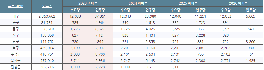 2023년 대구 아파트 수요, 입주물량(대구 미분양과 입주폭탄 중?)