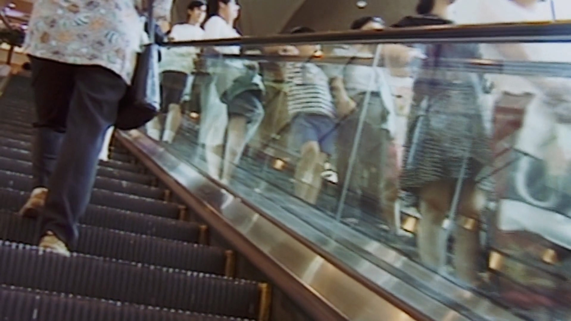인장을 밟고 촬영하는 방식은 홍콩 반환을 앞두고 정처 없이 떠도는 홍콩 사람들의 분위기를 대변한다. . .