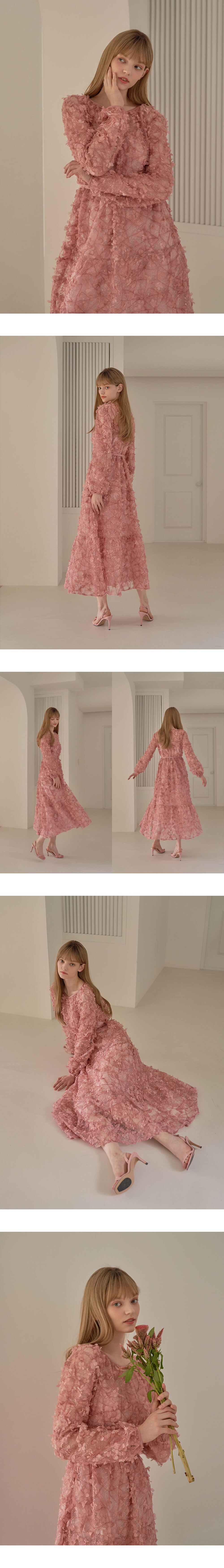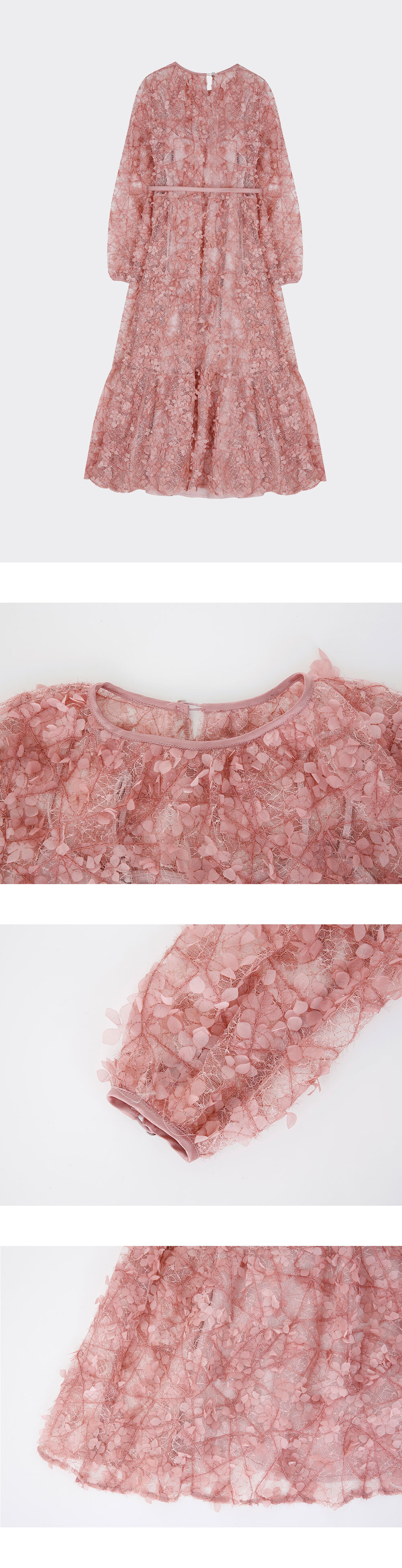 레이스 원단에 꽃잎이 입체적으로 돌출되어 있습니다.