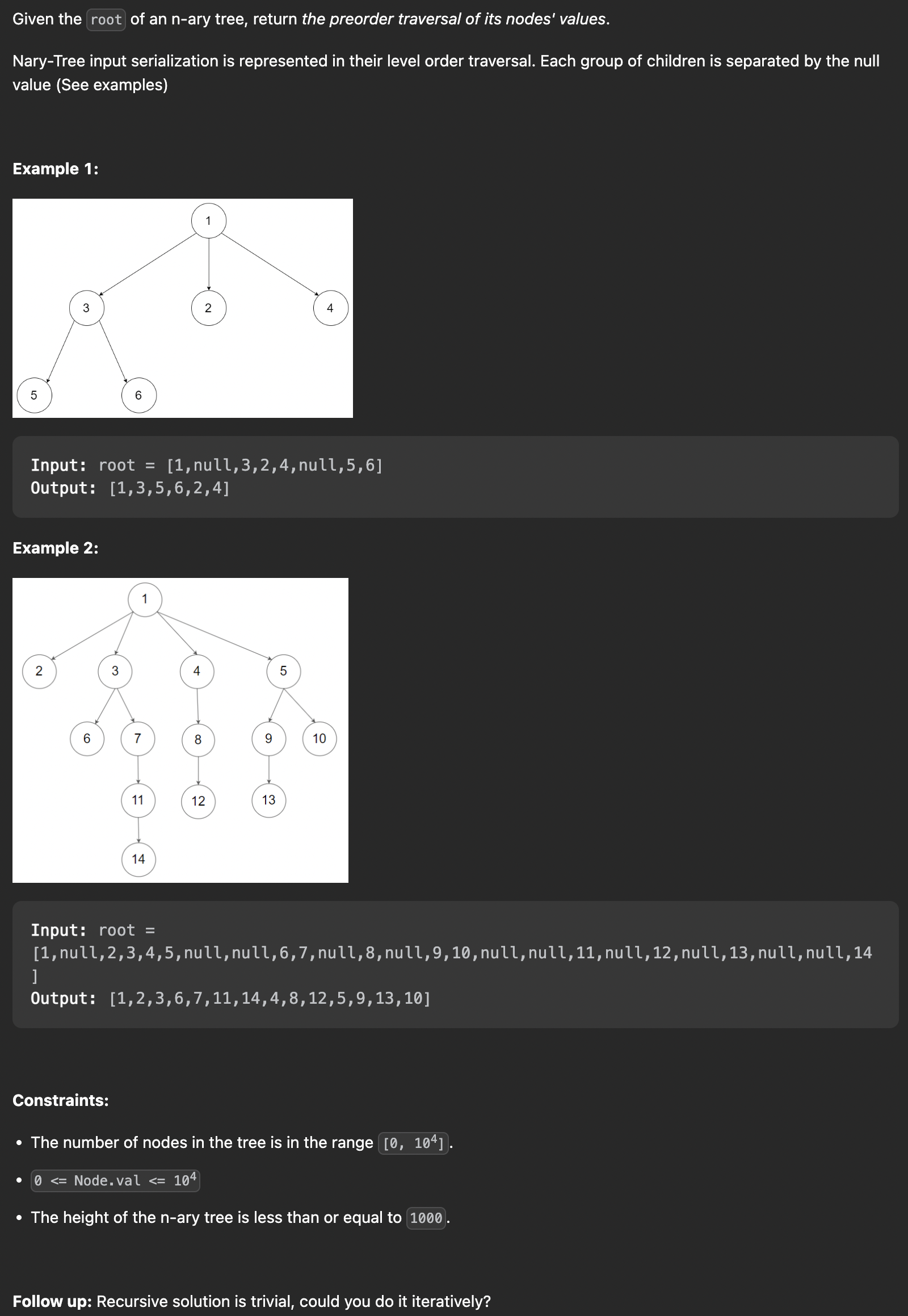 n-ary 트리의 루트가 주어지면 선주문 순서로 방문 및 출력